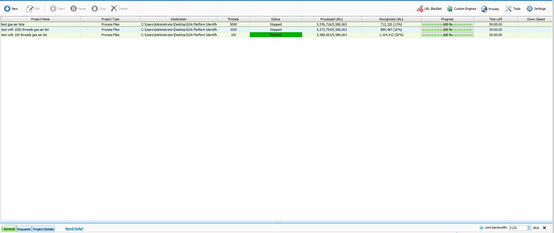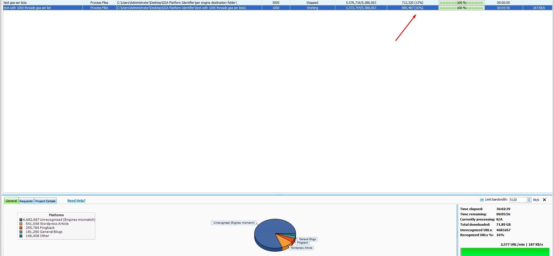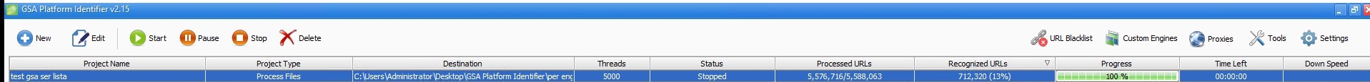 The thing is, GSA SER takes me 7–10 days to process this list, while Platform Identifier usually takes 1–2 days with 5000 threads. This is really driving me mad because I can’t wait 10 days just to sort a list that's why I bought PI.