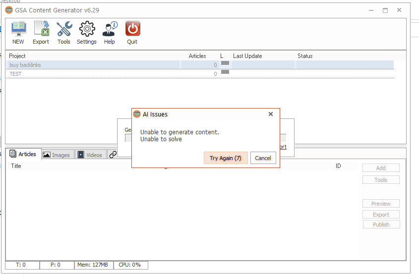 A few months ago I was able to use this function inside GSA content generator to generate thousands of articles perfectly fine but now when I try it is giving me issues. Whenever I go to create AI articles inside GSA content generator using GPT 4o mini it will constantly give me the error "unable to generate content, no valid content from API". I am sure that the API is correct and I even created a new one to test and it gives me the same issue, i am also sure that I have plenty of funds topped up in my account.