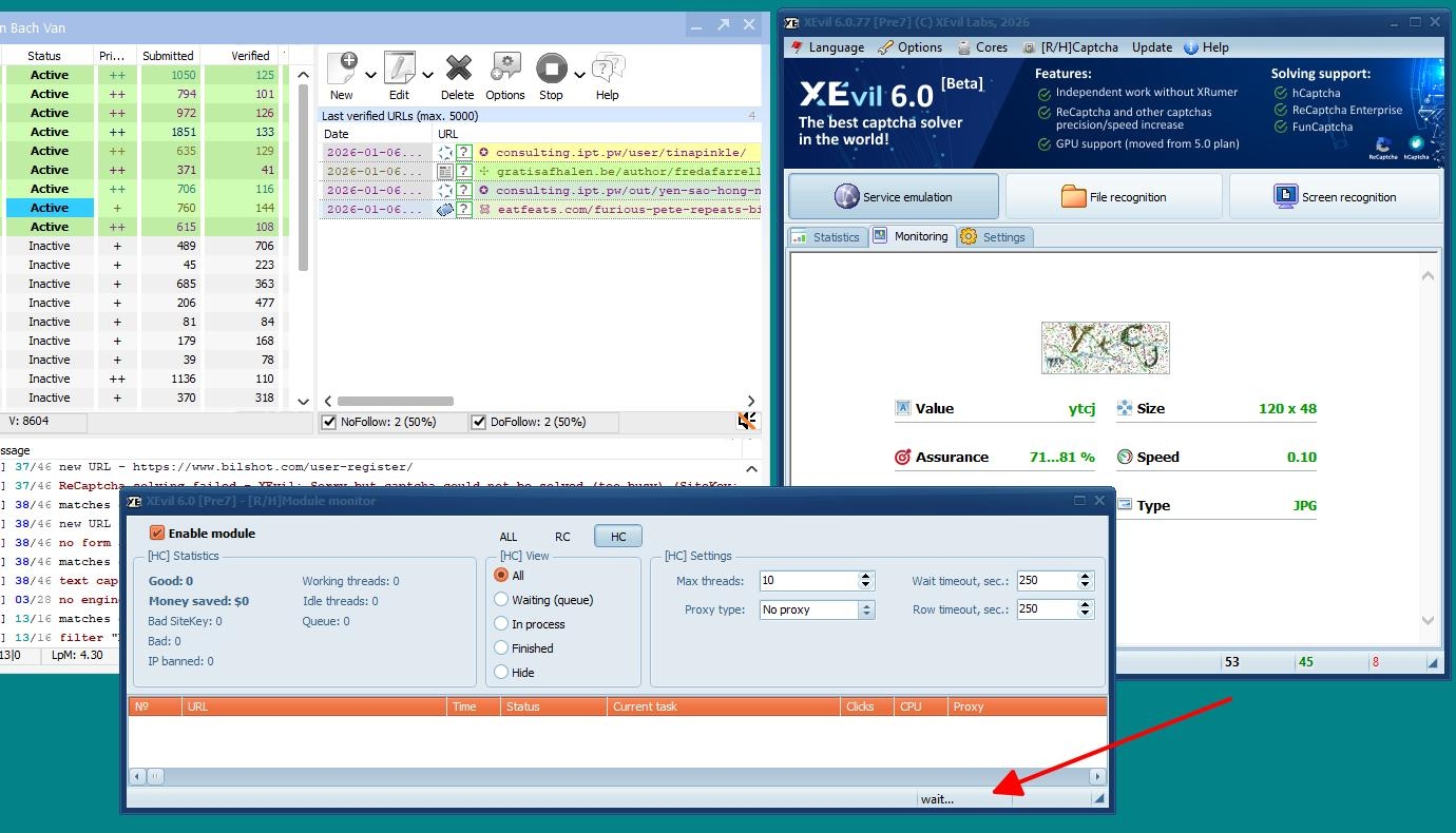 Hello everyone, I'm using XEvil decryption software, but the RC window shown in the image isn't working; it's always in a waiting state. I've turned off all antivirus and firewall applications on Windows, but to no avail. Does anyone have any experience with this and can offer some help? Thank you very much!