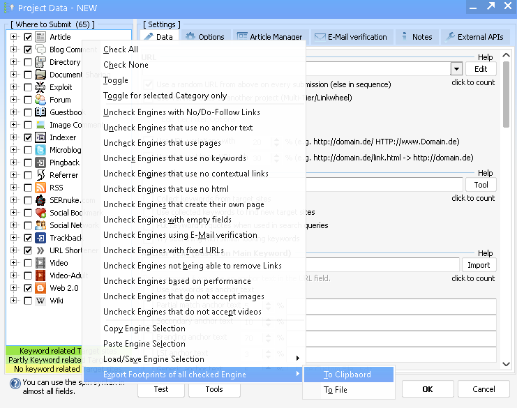 In the new version of GSA SER, the “Predefined Footprints” tool, which allowed us to generate footprints by selecting specific platforms (WordPress, Drupal, etc.), is no longer available.